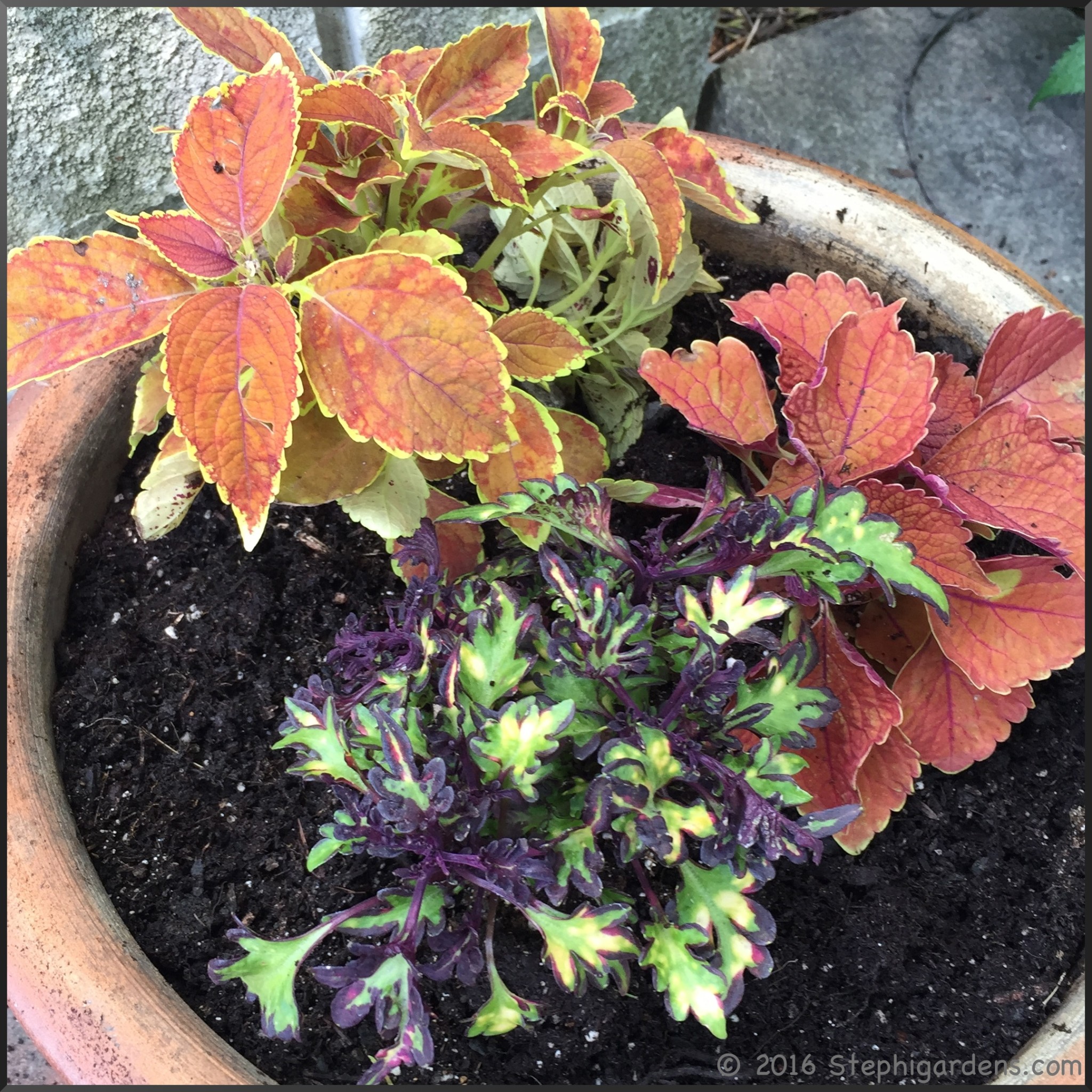 In the backyard, I am a creature of habit. In two shady planters near the grill, I always put in coleus. My local garden shop carries a great selection of coleus so every year I can mix and match.