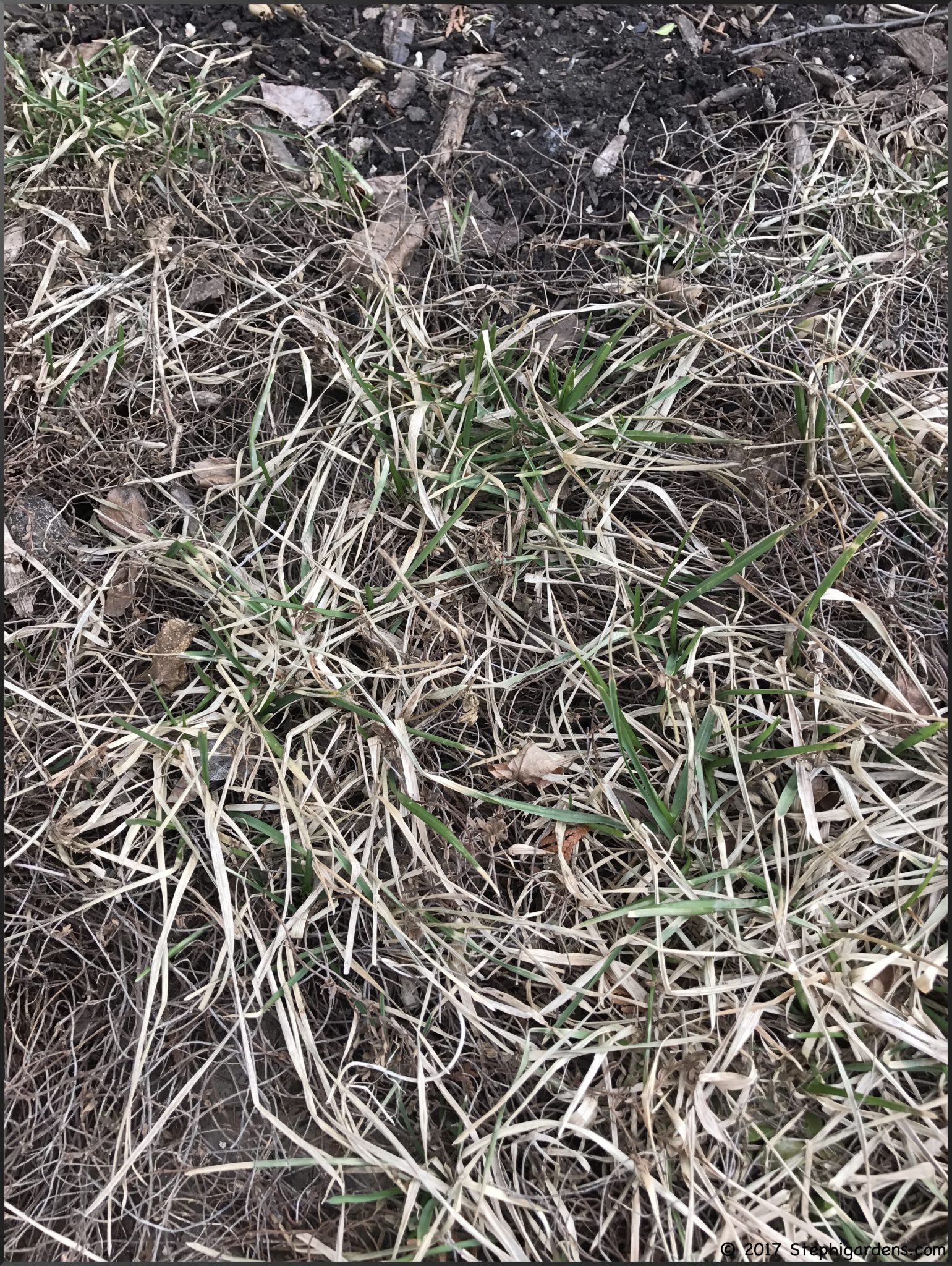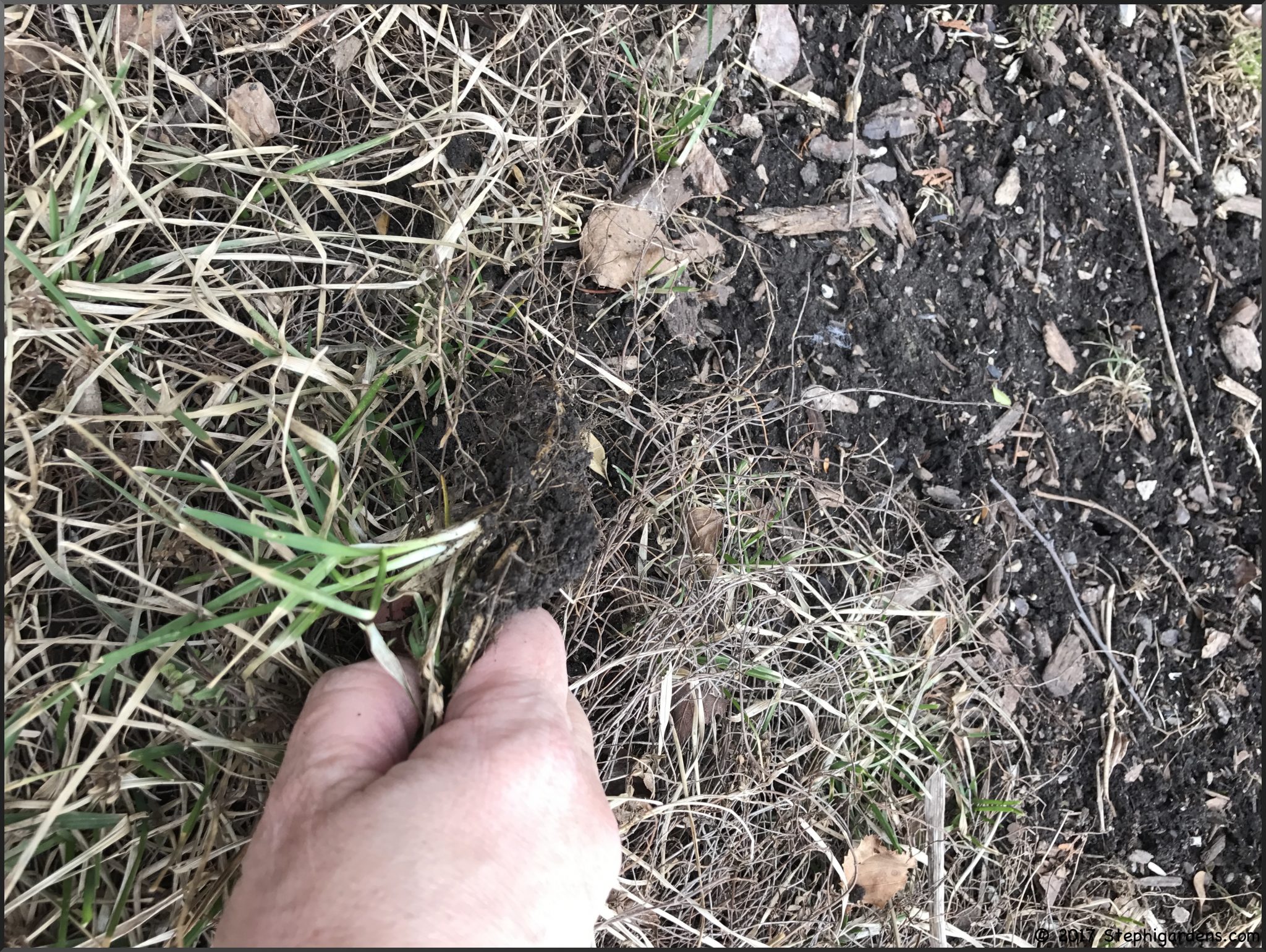 Definitely easier than pulling it out mid-summer when everything is green and thick. You need to get right down to the grass roots, otherwise you’ve just “cut” the grass and it’ll come right back. Since the thyme is dormant, it’s easy to find the roots and not have to dig around and disturb everything.