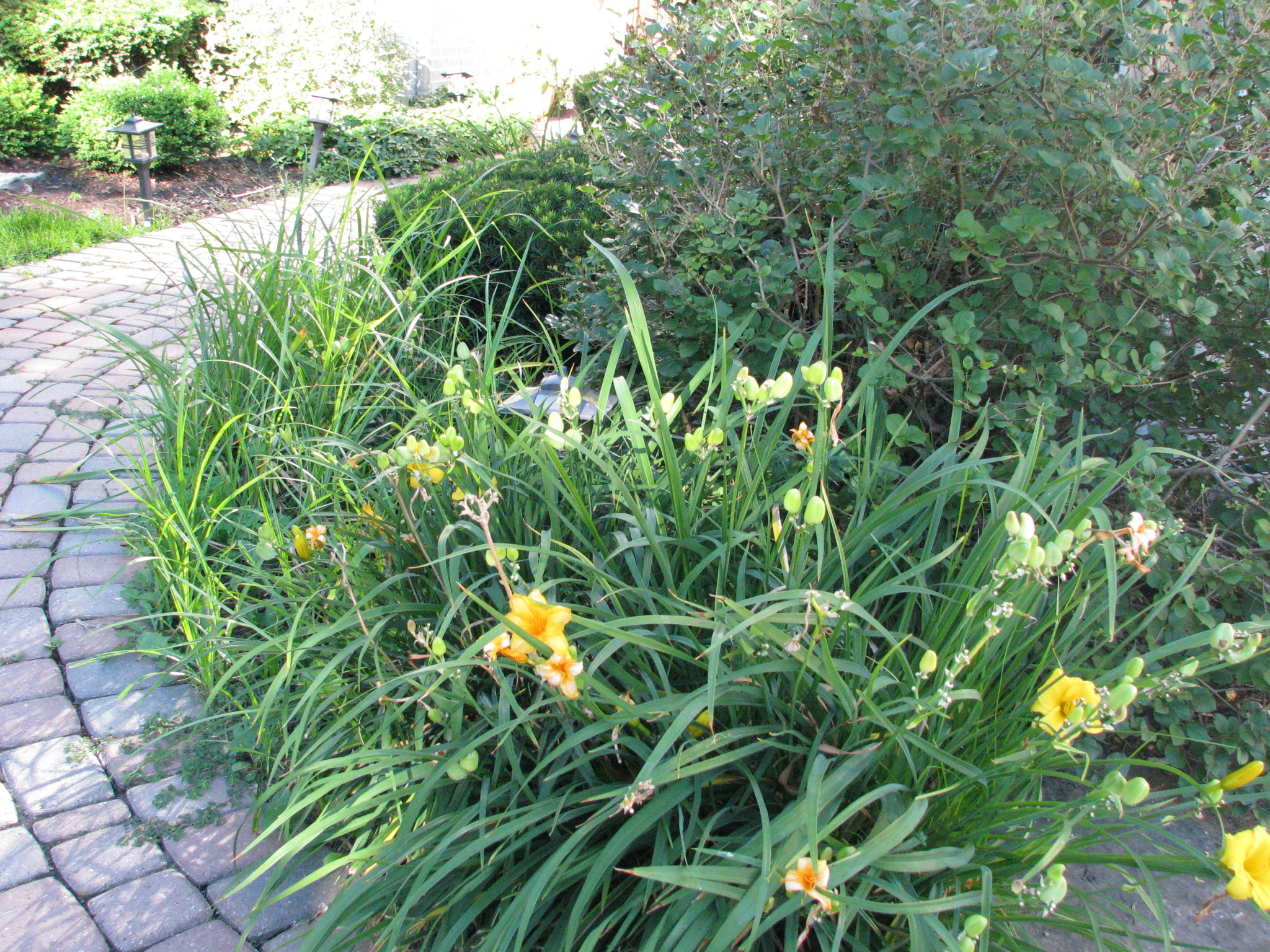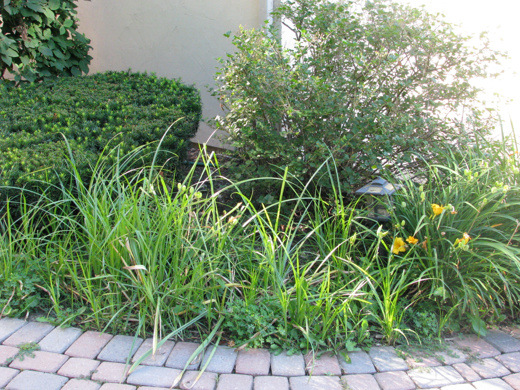 Vacations are always a little tricky to be sure everything stays healthy in the garden. Right before we left for almost 2 weeks, I gave everything a watering with Miracle-Gro fertilizer and dead-headed everything that would benefit from it. I set the sprinkler to try and optimize waterings, and had a friend also check on things and keep the pots watered. I also tried to be sure the plants that needed staking were supported so things wouldn’t be too out of hand when I got back.