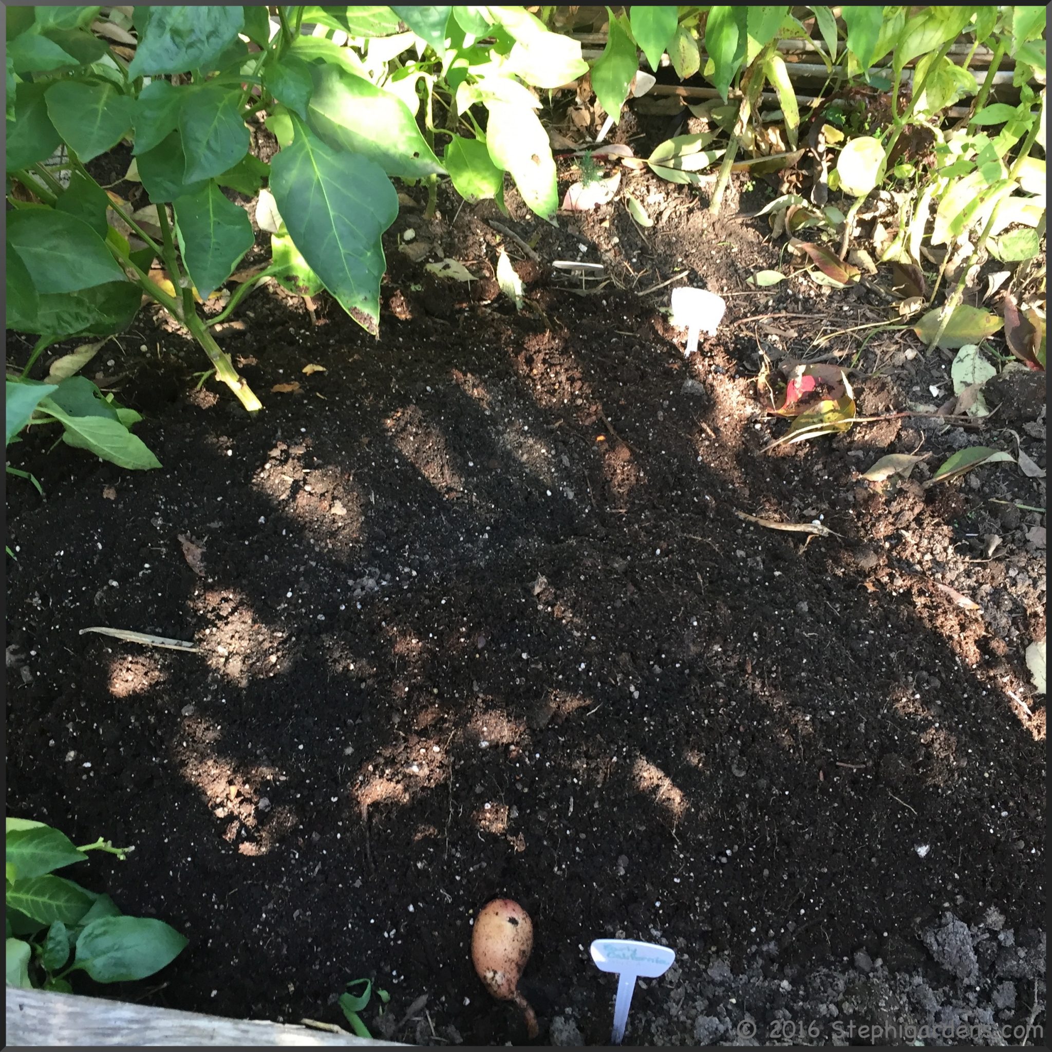 from Vern Goers, a local nursery. I was also gifted a lovely yellow pear tomato plant from my mom. (I’ve switched to growing my non-cherry tomatoes in bags to leave more room in the raised bed for the squash, zucchini, cucumbers and kohlrabi.)