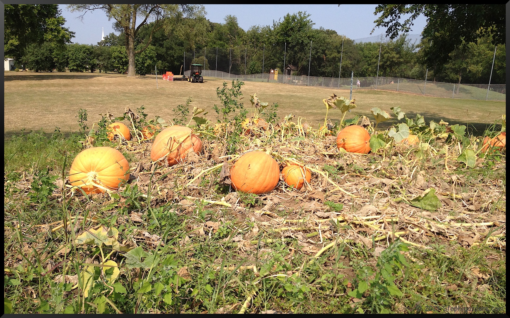 This has become one of my favorite fall things to do. The weather wasn’t great, but at least on the day I went it wasn’t raining. I also had the chance to make my own glass pumpkin paperweight in a class earlier in the week. I’ll describe that super fun experience in the next post. But as a teaser, here’s the pumpkins my friend and I made, along with everyone’s in the class. Mine is the green one, hers is the orange.