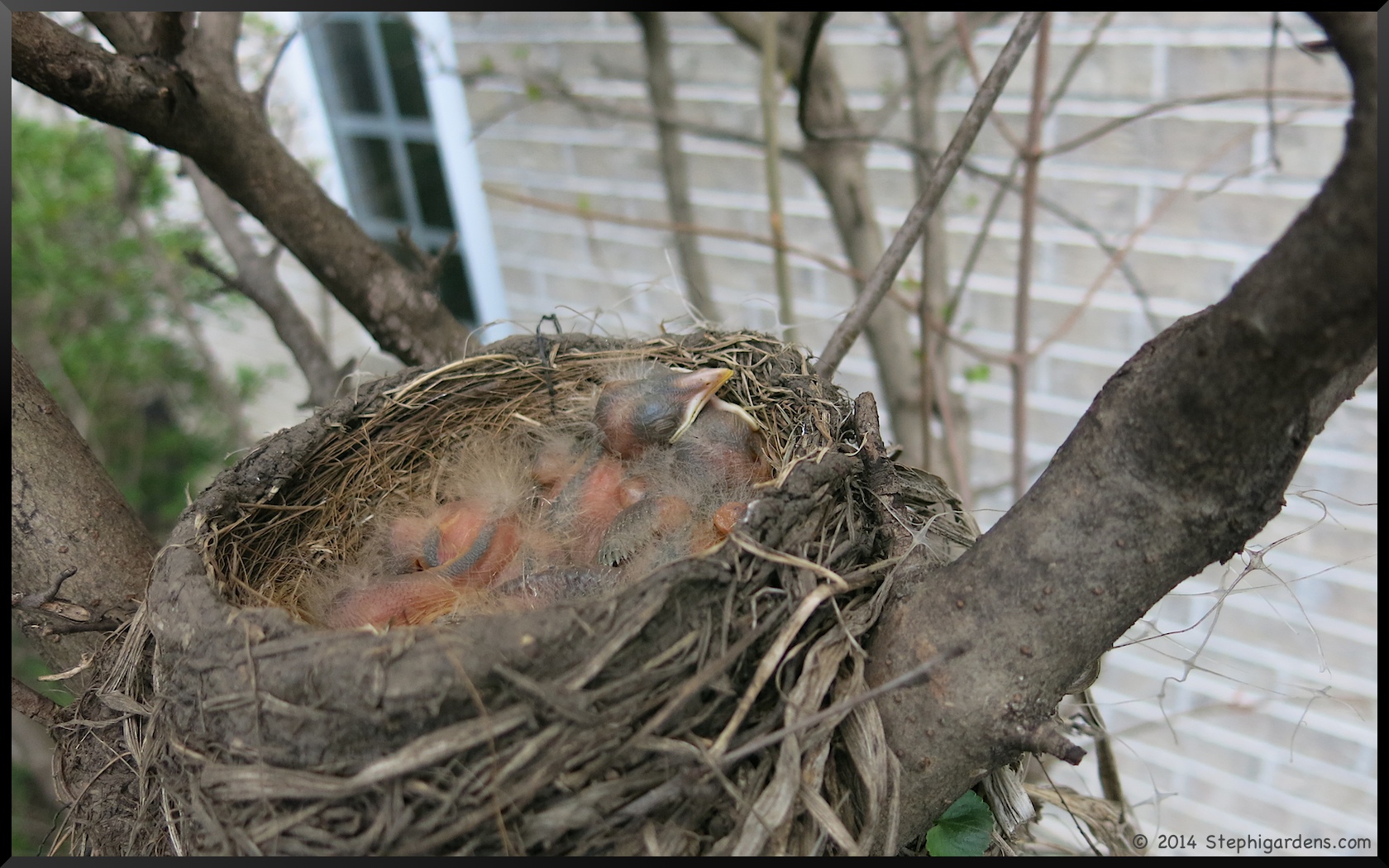 The other nest was not as far along. They are clearly newly hatched and instinctively looking for food. There were still some eggs in the nest and I’m not sure those will hatch or not.